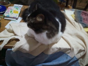 キーボードを打つときはキーボードの邪魔をし、縫物をする時は重石で載って上げる、と中々忙しい仕事なんだよ~。