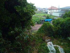 中: お隣の畑も水が溜まり始めました。