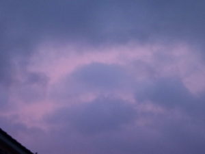 風が吹き荒さび、雨が叩きつけられる中で、雲の向うに現れた茜色…余り気持ちの良い色ではありませんが。