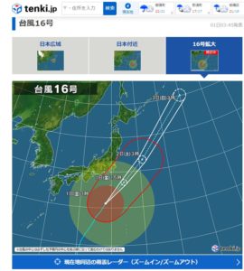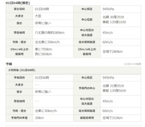 一方,天気jpの予想は9時までが”雨”、10時から強雨となり、11-12時台が豪雨で11時台が22mm、12時台が28mmとの予想で、13-15時台が強雨でその後2時間程”雨”が続きます。風の予測はweather newsの2/3程度ですが、これはいつもの傾向なのです。