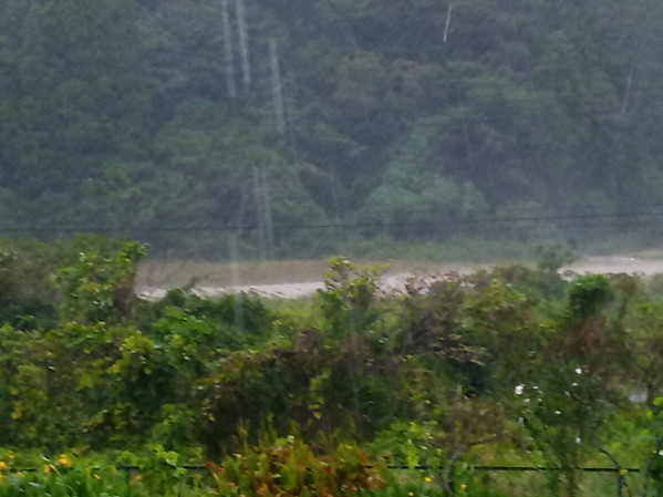 午前中から強い雨、午後からは本格的な台風の風が雨を叩きつけました。近くの田圃が波打って流れる濁流になってしぶきを放って居ました。洪水になったわけではないけれど、北風に弾き飛ばされる水はまるで靄の様になり、雨も波になって南へ向かって居ました。大雨、暴風、洪水、波浪警報が出ていた一日でした。