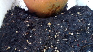 一休みしてから、大根を一畝と二畝の間に…or,四畝のボトルの処に昨日買った大根の種蒔きをします。