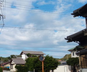 右の写真は青空が綺麗だったから。今日のおやつはカキフライに変更になりました。