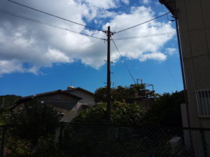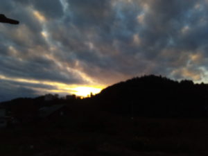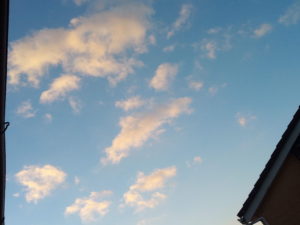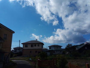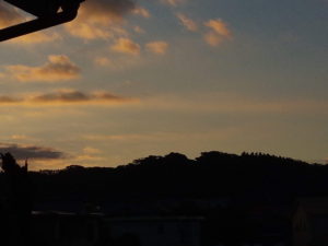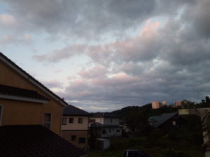 この写真を撮影した後、金色の綺麗な夕焼けになりました。エネルギーが溜まっているのでしょうか?私は雲の表情が好きなので、立ち上がって写真を撮る事はしませんでしたが、金箔をはった様な空でした。