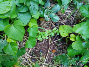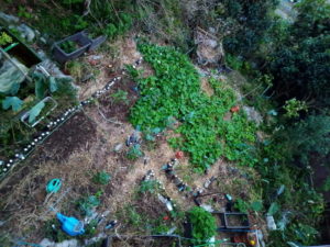 中: これは何を撮ったんだっけ?、となってしまうゴチャゴチャの中心にあるのは零れ種のジャガイモでいつも大きく育って呉れます。