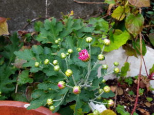 中: 11月咲の菊が開き始めています。急に気温が下がったから、今だ!と思ったのでしょうか。