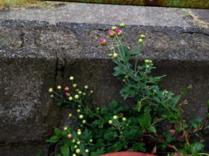 中: 11月咲の菊が開き始めています。急に気温が下がったから、今だ!と思ったのでしょうか。