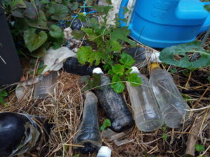 中: これは何を撮ったんだっけ?、となってしまうゴチャゴチャの中心にあるのは零れ種のジャガイモでいつも大きく育って呉れます。