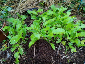 左: 10月初旬蒔きの大根、そろそろ間引きだなぁ。お味噌汁に入れよう。