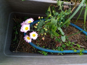 寒さに震えていたニチニチソウを家の中に取り込みました。二階の廊下に置きます。