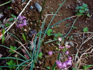 右は水仙の芽です。ツンツン、と小さく剣状の葉が3-4カ所に出て来ました。町の日当たりの良い処では既に10-15㎝になっています。我が家の水仙たちは晩生が多い中、唯一早生の水仙で、香りの強い白い花だったんじゃないかな。