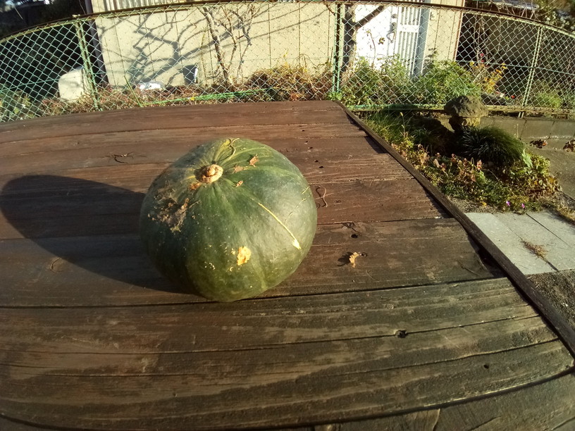 既にカナムグラは枯れて蔓だけが椿の木に張り付いて居ます。それを観ただけで、わぁ…面倒臭い、と重い腰が更に重くなります。しかし、今日は流石にやって仕舞おう、とサルビアレウカンサメキシカーナの救出作戦がなされました。ふとお隣との境を見ると、あっ、南瓜!それも上も裏側も無傷です。空中栽培だったから裏も綺麗で虫食いも無し!カナムグラさんからのプレゼントかしらね。凄いなぁ。後一月で冬至です。冬至南瓜になるか!?