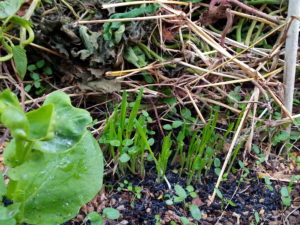 18時前の天気予報では、この雨が夜に止むと、火曜日にもう一度雨が、今度は一寸本降りになりそうです。でも、その後は晴れが続くと10日間天気予報では言っております。それは嬉しいですね。どうぞ、雨で肥料が溶けて玉葱がスクスクと育ちます様に。と言っても1月末か2月初めまでは、細いまんまなんですね。年内は週一で、忘れない様に必ず日曜日に施肥をします。葱類は何と言っても肥料を沢山食べるんですね。大蒜も同じだと思いますよ。