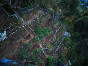 玄関アプローチのプランターと一畝と二畝の空きに、ばら蒔きではなく筋蒔きで蒔きました。西隣さんの畝にもちょこっとプレゼント。大蒜と葉物で緑の畝になっていたら喜んで呉れるかなぁ。私の畝にもお正月頃に食べるものが間引き菜でも良いから、出来ると嬉しいなぁ。