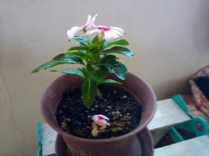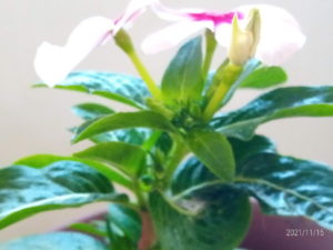 二階の廊下のニチニチソウ。花芽や側枝が上がっています。