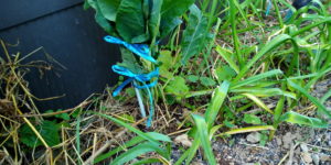 ラベンダーの花が色濃く咲いています。どうやらラベンダーは横に寝る性質があるらしい。倒れた位置に根を下したい、と言っている様な気がします。きっと途中の節から発根をするのではないだろうか、と今Uピンで留めています。