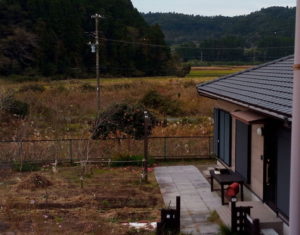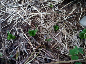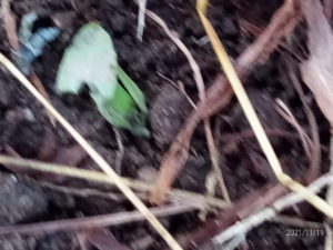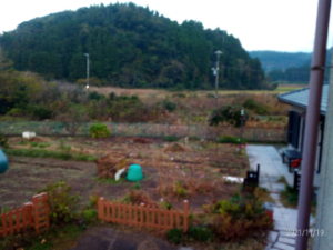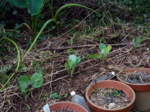 左: 此方は我が家の柿の木の下。西隣のKさんから頂いた蚕豆が発芽した処です。Kさんが蒔いたのと同じ日に蒔いたから発芽も一緒でした。