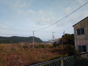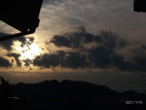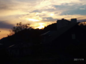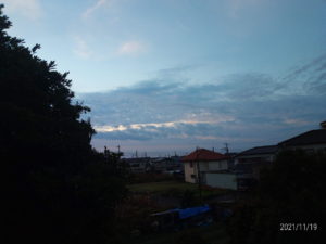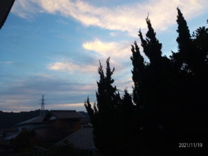 雨戸を開けて見上げた空には、雲が多く星は真上に少し見えました。西の山には少し歪に見える月が掛かっていました。