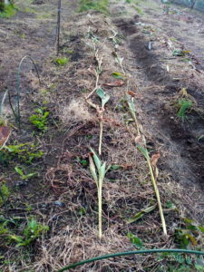 左: 明日は二畝の大根を結わえて、二畝の玉葱は今年の夏の収穫なので、このままにして置くと分球してしまうから、一本立ちさせます。