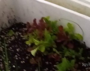 右はトロ箱育ちのレタスです。段々立って来ました。
