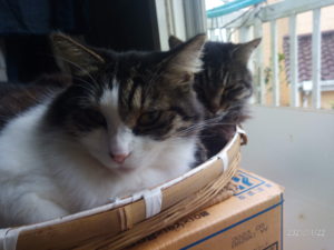 2時半に一旦起きて4時までpcの前に座っていました。うめ以外は2時半にカリカリを食べて外出し、びしょ濡れで帰って来ました。うめはまた表に行った?4時にうめが戻りました。毛皮が濡れていないから、一階に居たのかしら。タイガーさんは来ませんでしたね。うめはさっき落ち着いて食べられなかったから、今お食事中です。