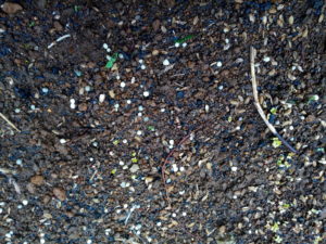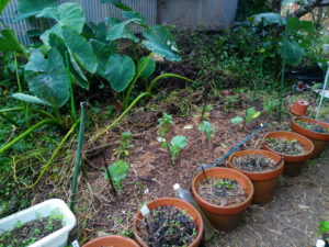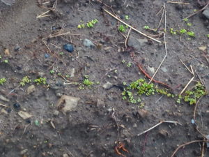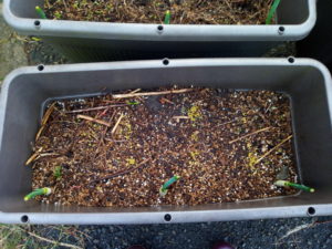 これは我が家の庭とプランターの小松菜、蕪、山東菜、高菜の発芽です。