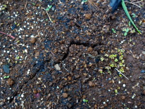 中: 真ん中にポチッと出ている黄色の発芽は高菜?それとも右の写真のものが山東菜?
