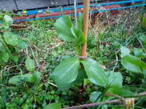 左: 蚕豆も昨夕から延びました。