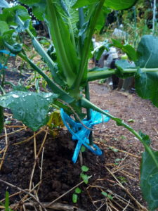 左: ブロッコリーの紐が外れた?外した?(あ~、窮屈だった!)。勿論、結わき直しました。