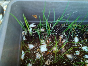 右: いつも万能葱と比較して細い、と思っていた長葱(汐留)が太って来ました。肥料と寒さを感じて来たのでしょう。