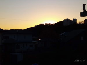 今日の日の入りは16時28分です。後15分位で沈みます。