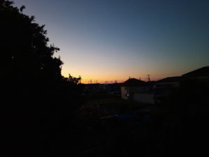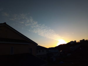 今日の日出日の入り時刻は6時24分、日の入りが16時28分です。写真は6時1分の空です。