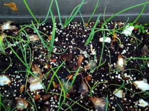 右: 万能葉葱は12月には使えそうです。嬉しいなぁ。また、種を買って蒔いておきましょう。