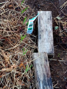 支柱の林が出来ました。篠竹だったり、イボ竹だったりいろいろですが、下町の、通りに面した入り口から入る、小洒落た蕎麦屋さんの玄関アプローチが竹が植えられて居たりする、アノ感じです。笹の葉が枯れてカサカサ言っています。お金の掛け具合とセンスは全然違いますが(笑)。