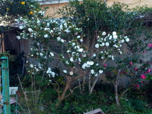 右: お隣の山茶花白は、今年は花期が長いなぁ。