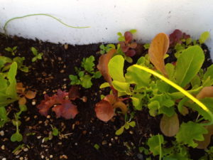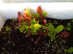 中&右: 物干しのレタスが一番早く大きくなりました。