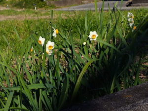 右: お隣の駐車場に咲く水仙。