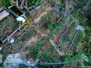 左: 蚕豆たちがまた伸びている。余り伸びないでよ、寒波が来た時にダメージが大きくなるよ。勿論不織布は掛けるけどね。