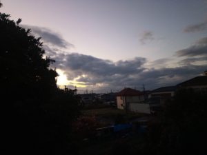 weather newsによればほぼ一日曇りで、夕刻から雨が来ますが、本格的な雨と強風が日付の変った頃から明朝8時まで続きます。雨の量も7mmで風速は南南西―南西が17-18mになります。7mmという量は平均値ですからその1.5倍位の雨が降り出しには来る可能性もあります。