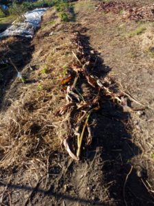 中: 撮った本人が何を撮ったのか…あ、そうだ、収穫し忘れたサツマイモです。掘りました。ハリガネムシの穴が一つありましたが、綺麗な形の金時が一本出て来ました。