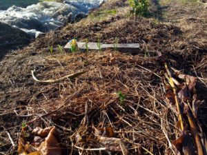 左: 二畝で発芽したアブラナ科はなんでしょう?今回蒔いた種では無いですよ。