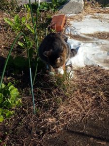 12時半、風が強くなって来ました。福が来てジュレとちゅ~ると両方を食べて行きました。暫く庭仕事をする私の周りをウロウロしていましたが、何処かへ消えました。