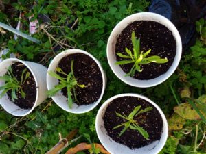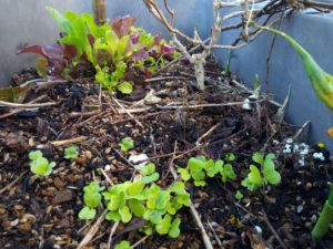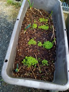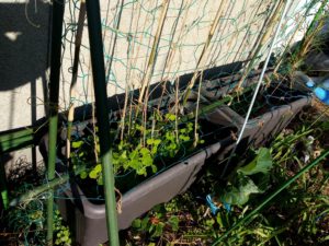 玄関アプローチのプランターで育つアブラナ科四種はこの後一部を移植してみました。