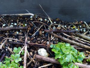左: ここは菜の花を蒔いたつもりだったけれど、出て来ませんね。種が古かったのかなぁ。