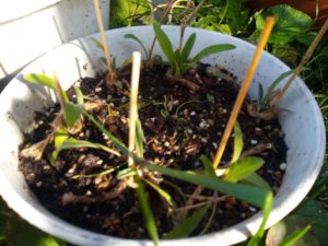 右: 私が種から育てた玉葱も少しは太くなって来ました。頑張れ~!!
