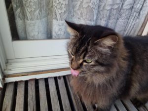 13時半、風が強いので、洗濯ものはサッサとお昼ごろに取り込んでしまいました。猫達が昼寝から起きて来て『何か頂戴!』、とボディランゲージで伝えて来ます。四匹居たので、ちゅ~る掛けご飯を上げました。ちゅ~る掛けご飯は本当に集中力高くして食べますね。ハンティング以外では珍しいんじゃない!?