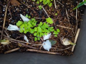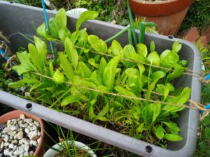 雨の後、それも大雨の後は苗が本当に変ります。左: 目に見えて変わったのは小松菜と蕪の葉でした。