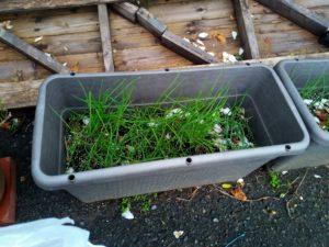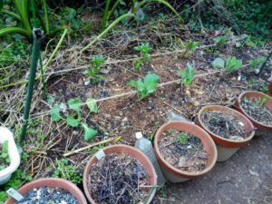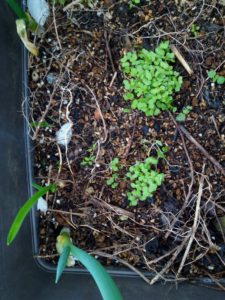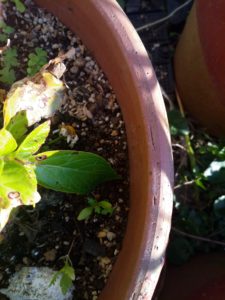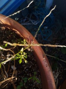 中&右: 鉢土に出たノースポールは昨年の零れ種です。 。