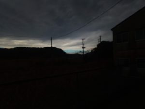 大根の漬物を作っている内に夕焼の時間を逃してしまいました。写真は17時過ぎの静かな残照です。未明の雨と強風は本当にあったのですよね?