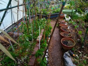 今日は見回り以外は殆ど何も出来ないだろうなぁ。風に乗じて縄抜けしたブロッコリーを三本発見!!支柱で倒れたものはありませんでした。瞬間的には25m位吹いているから、30m台にならなければ30㎝の深さに挿した支柱は大丈夫ですね。見回りをして来ました。縄抜けキャベツに、蚕豆に、ジャガイモの篠竹支柱は確り挿しこんでいなかったり、脇の通路から先に行けていません(笑)。その途中で猫の喧嘩の仲裁をするわ…うめが黒ちゃんに叱られていました。やる事多過ぎ!